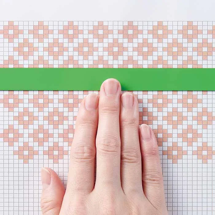 図案の下にプレートを敷き、上からマグネットでピタッと固定して使用します。編んでいる箇所が一目でわかり、マグネットは軽い力でスライドさせることができるので作業がスムーズに進みます。