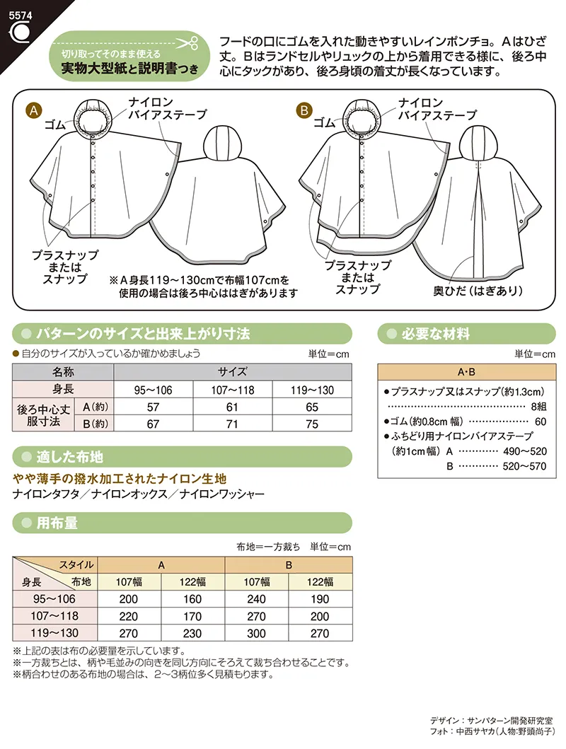 Aはひざ丈。Bはランドセルやリュックの上から着用できるように、後ろ中心にタックがあり、後ろ身頃の着丈が長くなっています。