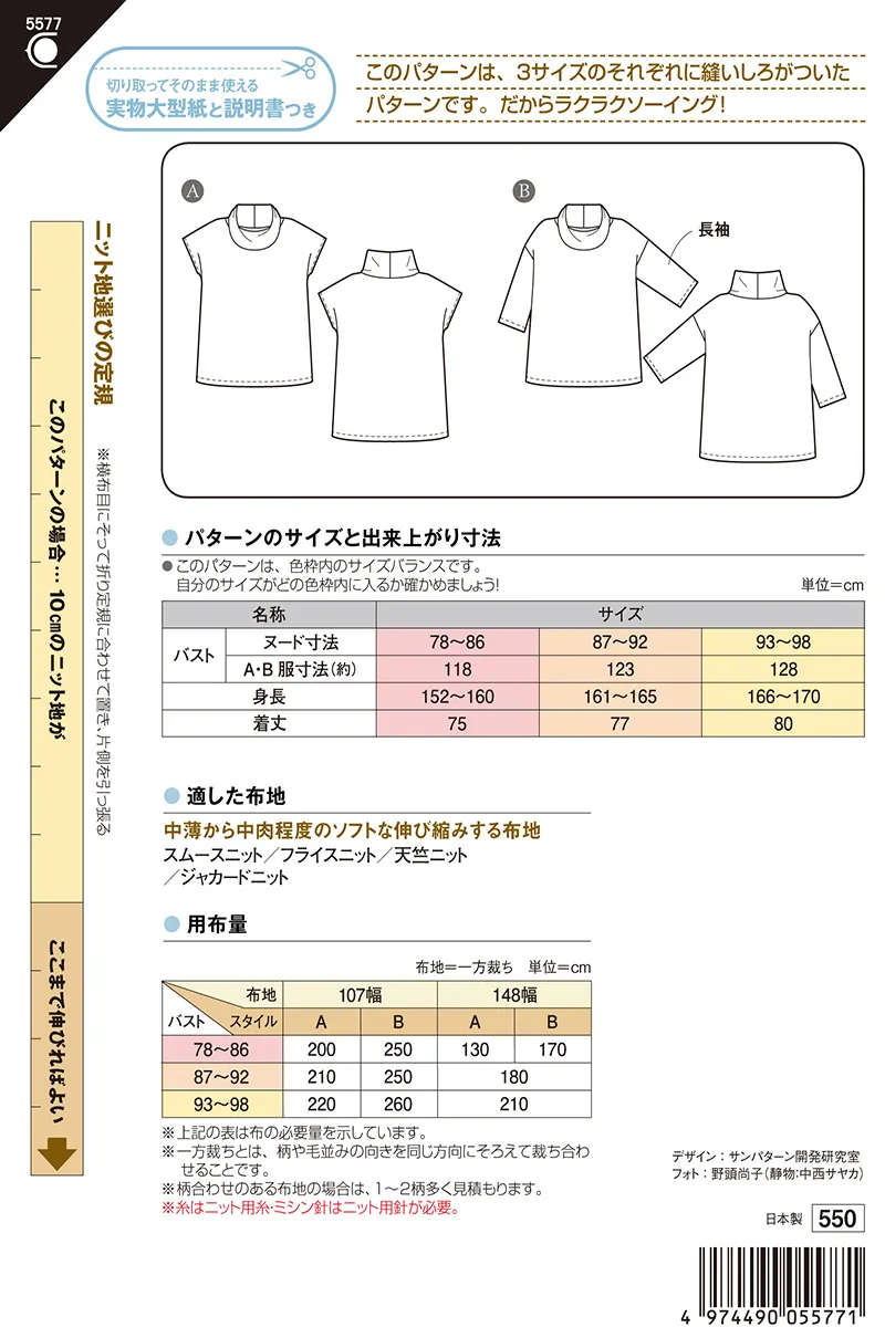 適した布地:中薄から中肉程度のソフトな伸び縮みする布地