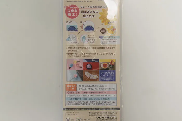 プレートに布をはさんで順番通りに縫うだけで簡単にお花のモチーフができます。