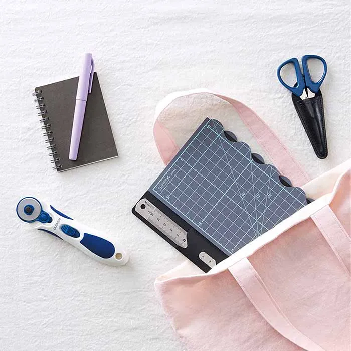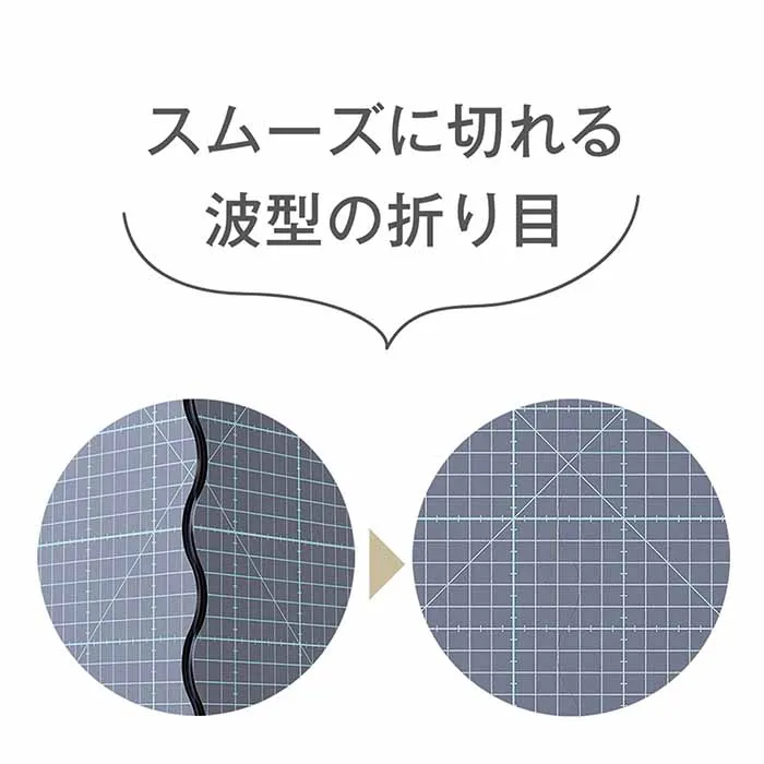 バッグにも入るコンパクトサイズだから持ち運びに便利。(展開時29×18cm。折りたたみ時15×18cm)狭い場所でもサッと開いて使え、スムーズに切れる波型の折り目です。