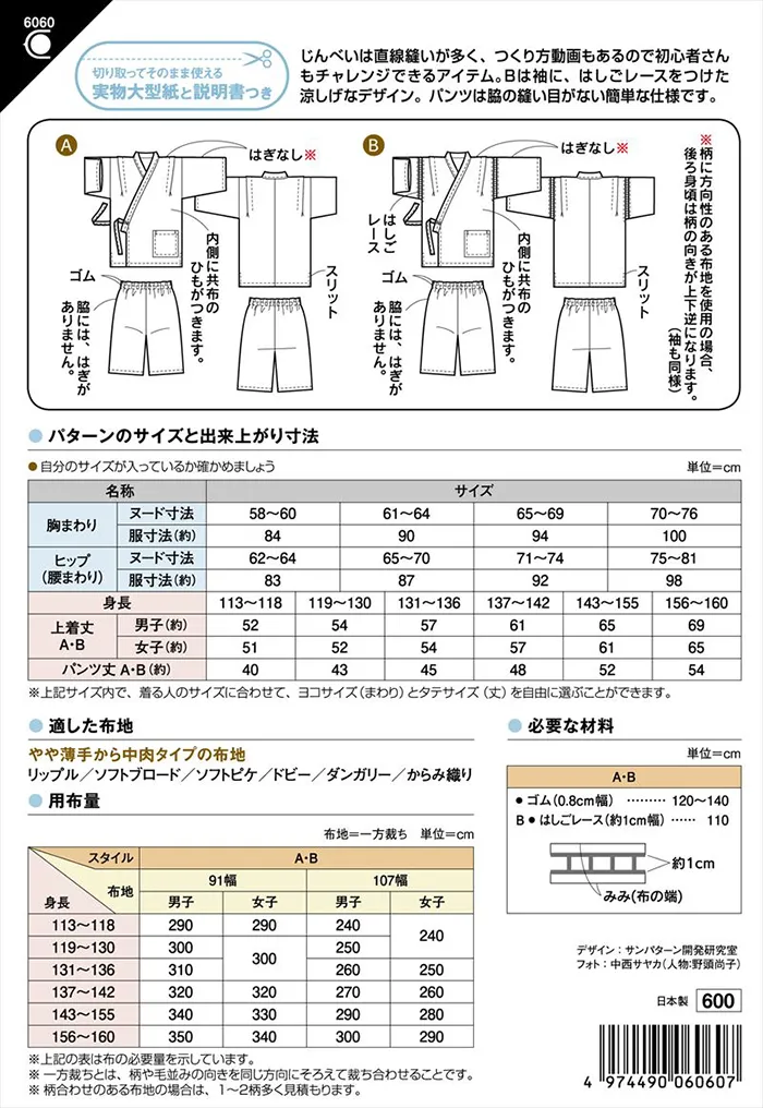 夏の定番「じんべい」は直線が多いので初心者さんもチャレンジできるアイテム。