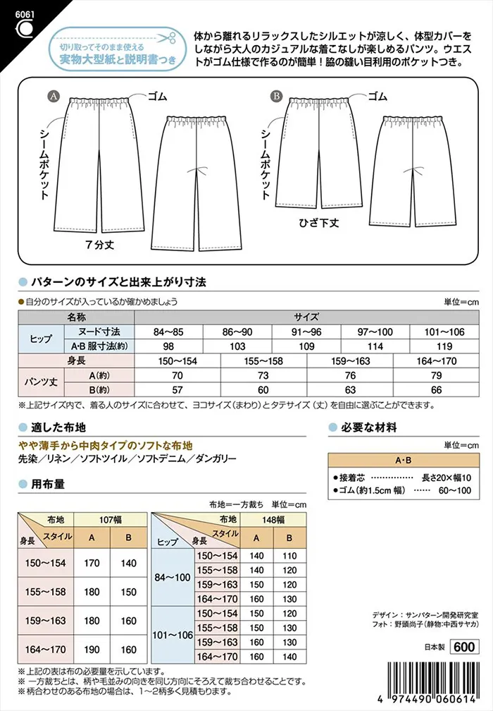 ウエストがゴム仕様なので作るのも簡単!脇の縫い目利用のポケットつき。