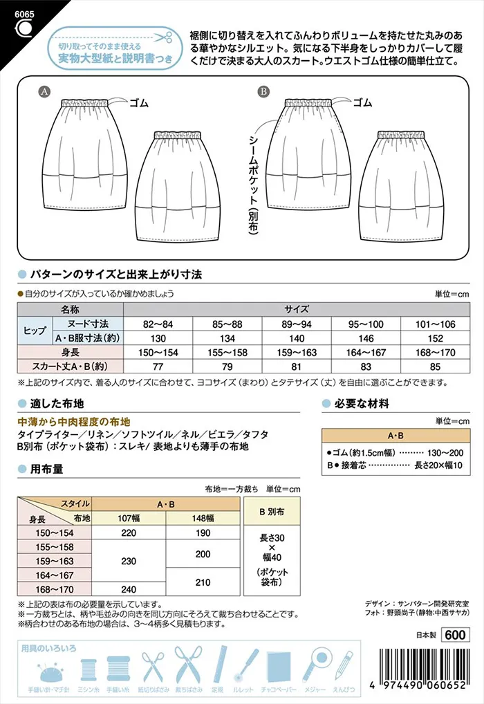 スカートのボリュームが安定する広幅のベルトにゴムを通した簡単仕立て。
