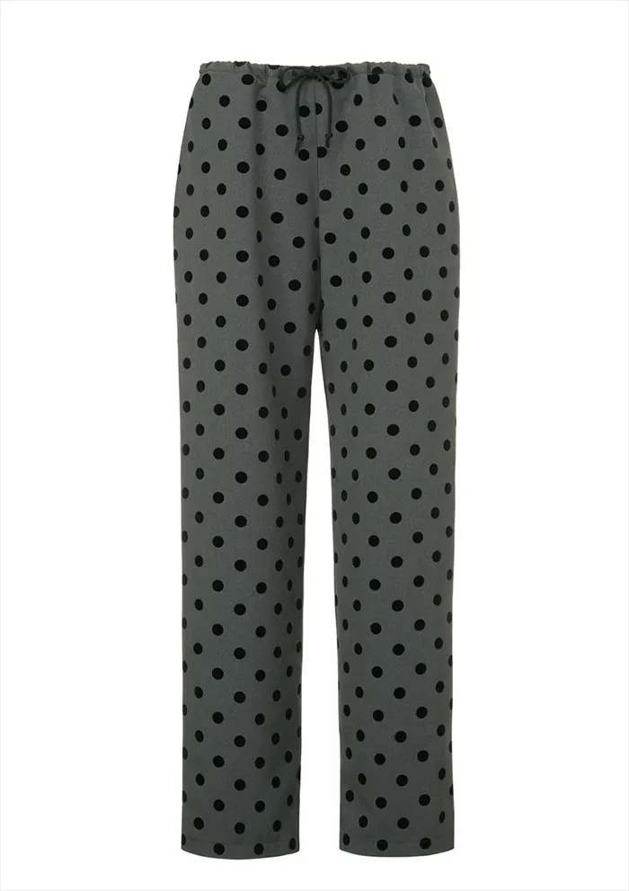 ウエストゴムの簡単な仕立てと、流行に左右されない腰まわりがすっきりとしたストレートシルエットが幅広い世代に人気。