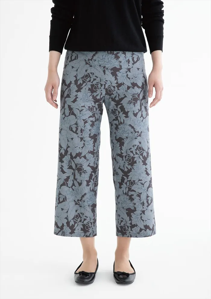 ウエストがもたつかないシンプルなシルエットのパンツは、ワンピースとの重ね着コーデや、布の柄を楽しめます。