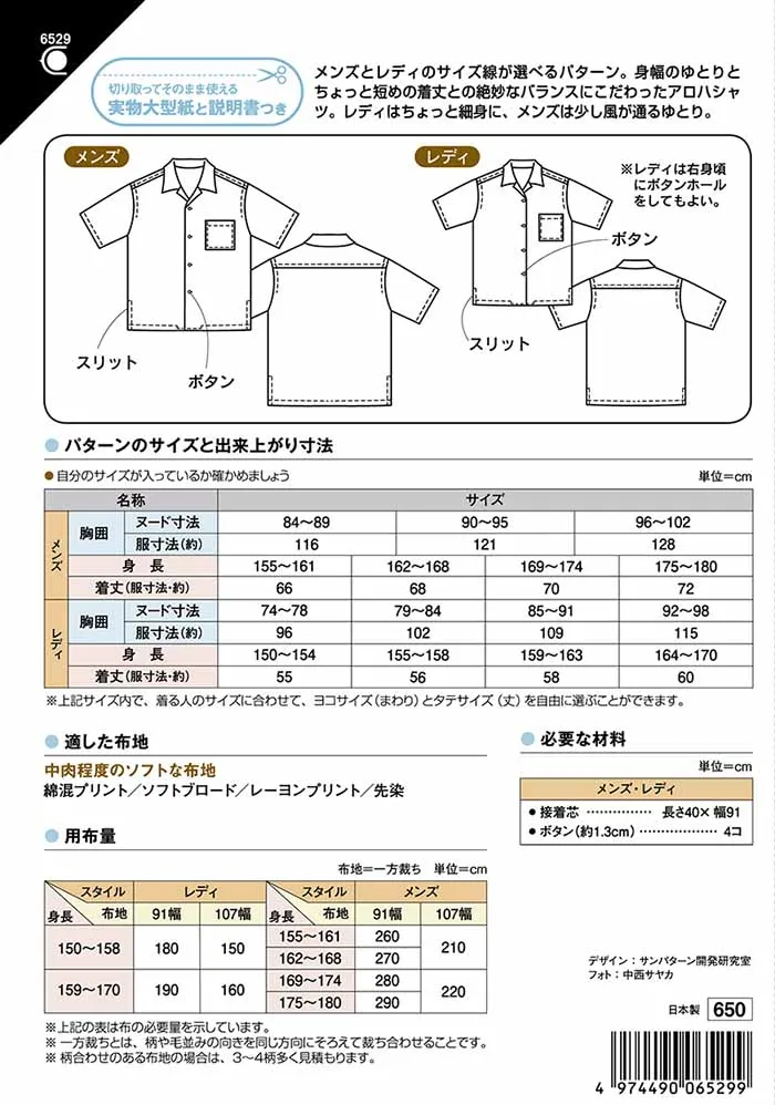 メンズとレディのサイズ線が選べる男女兼用パターン。