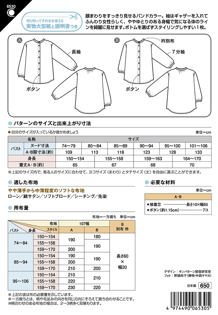 パターン・型紙 バンドカラーブラウス