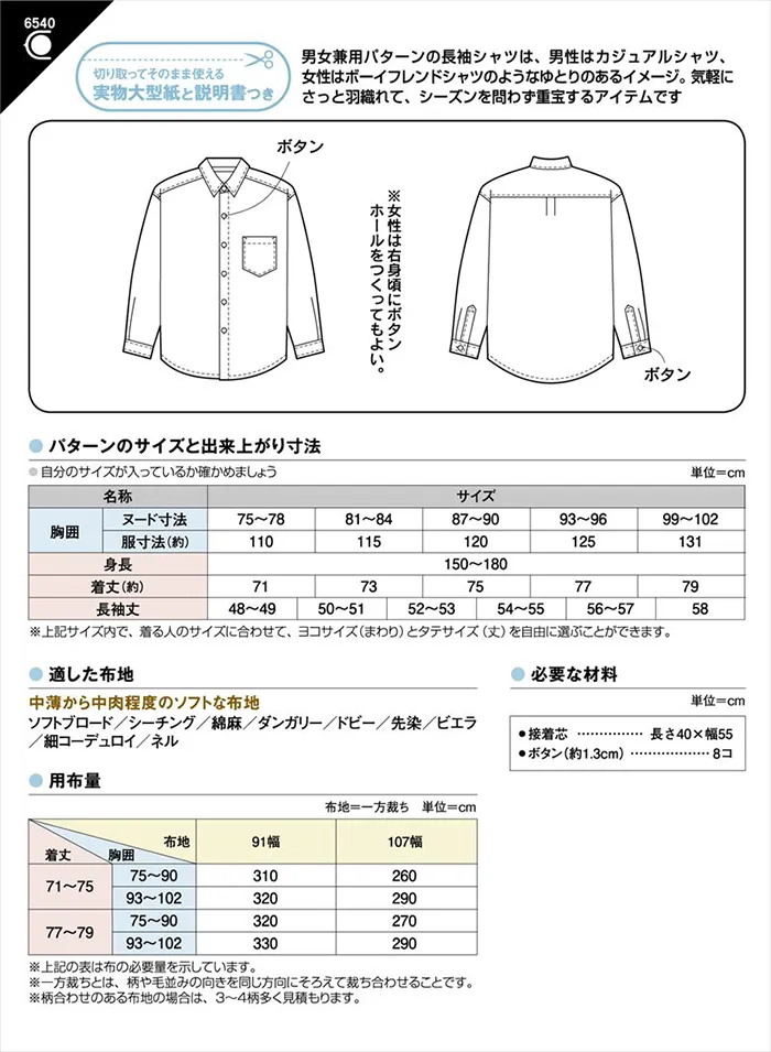 パターン・型紙 長袖シャツ