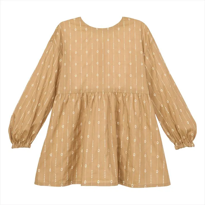 袖は程よいボリュームとパターンニングにこだわった袖口ギャザーの立体感で甘くなりすぎない大人のバランス。