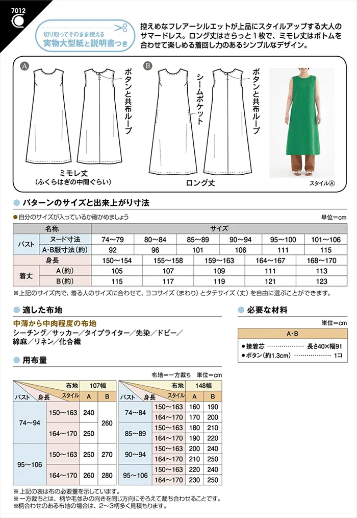 パターン・型紙 Aラインノースリーブワンピース