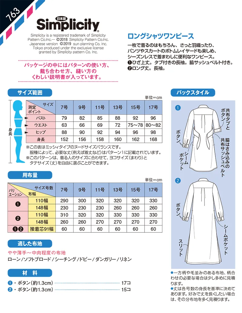 パターン 型紙 ロングシャツワンピース