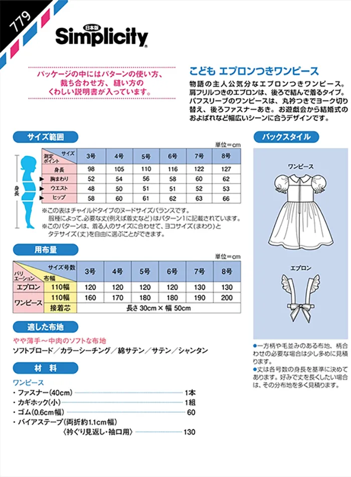 パターン・型紙 こどもエプロンつきワンピース