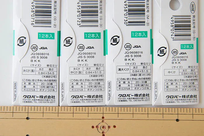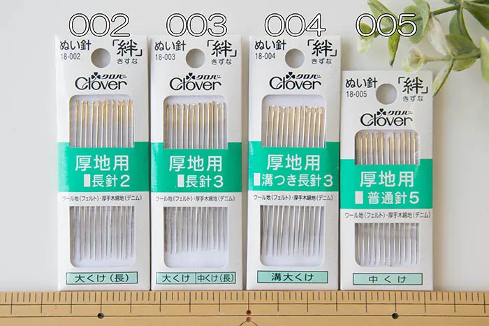 ぬい針「絆」には和針と洋針の両方の規格の針がラインナップされていますが、どちらも折れにくく曲がりにくい針軸なのでこだわらずに縫いやすい針を選んでください。