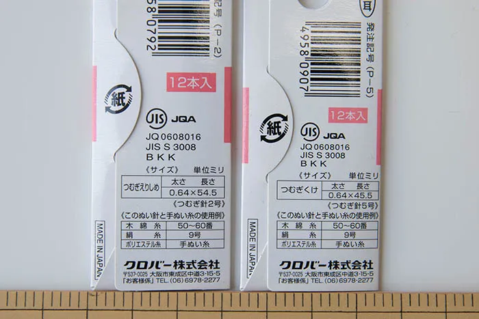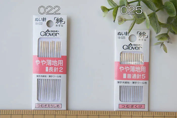 ぬい針「絆」には和針と洋針の両方の規格の針がラインナップされていますが、どちらも折れにくく曲がりにくい針軸なのでこだわらずに縫いやすい針を選んでください。