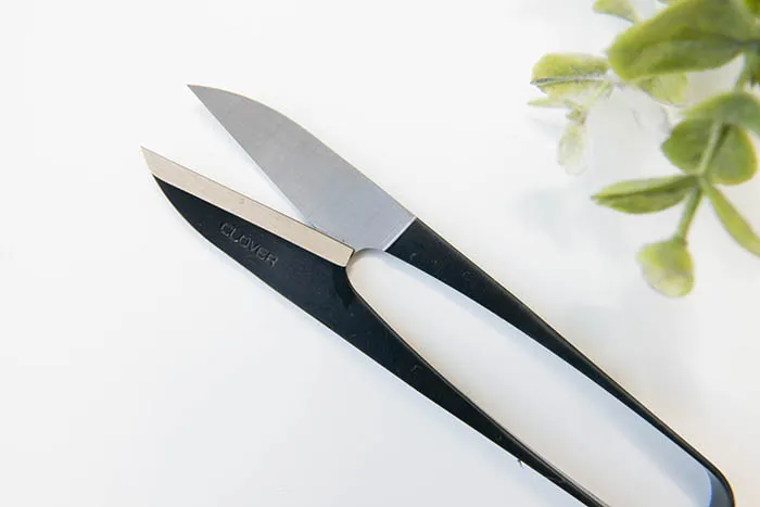 刃先が反っているので、平面な布地に対して布地に沿って裁断が出来ます。