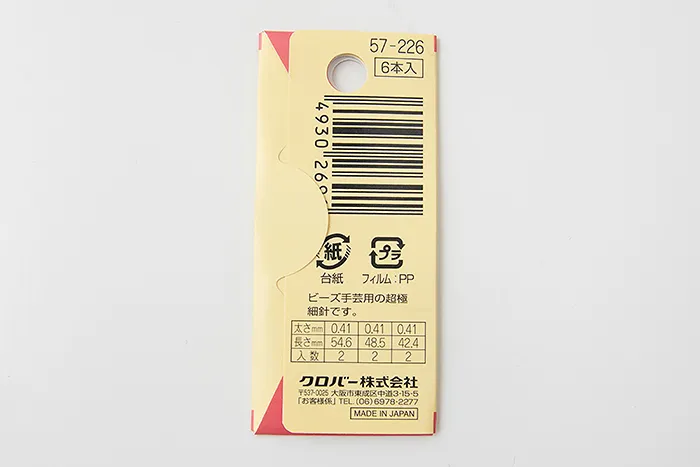 ビーズ手芸用の超極細針です。