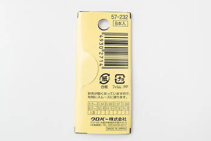 針先が鋭く尖っていますので、布地にスムーズに通ります。