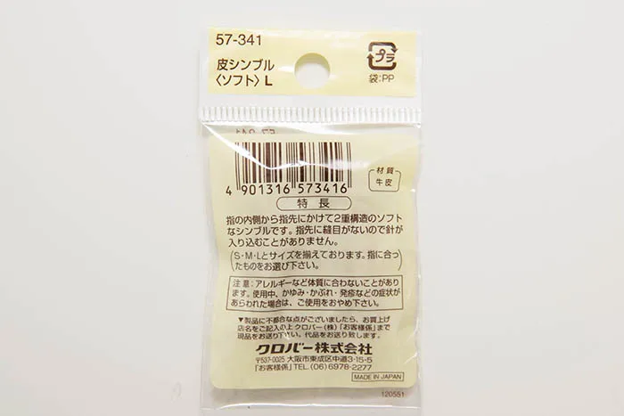 指の内側から指先にかけて2重構造のソフトなシンブルです。