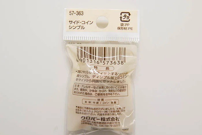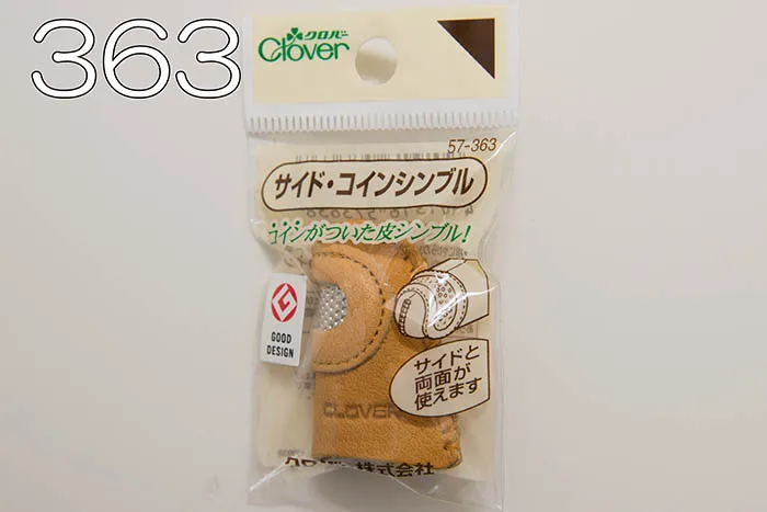 指に柔らかくフィットするソフトなレザー製のシンブルに針を押すのに便利なコインをセットにしました