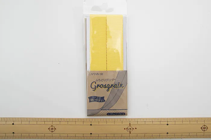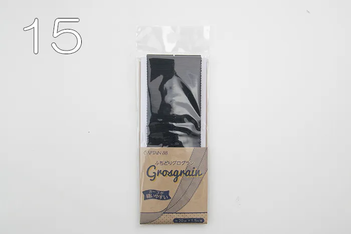 普通のグログランリボンとは異なり真ん中に折り曲げやすいよう筋が入っているのでふちどりしやすくなっています。