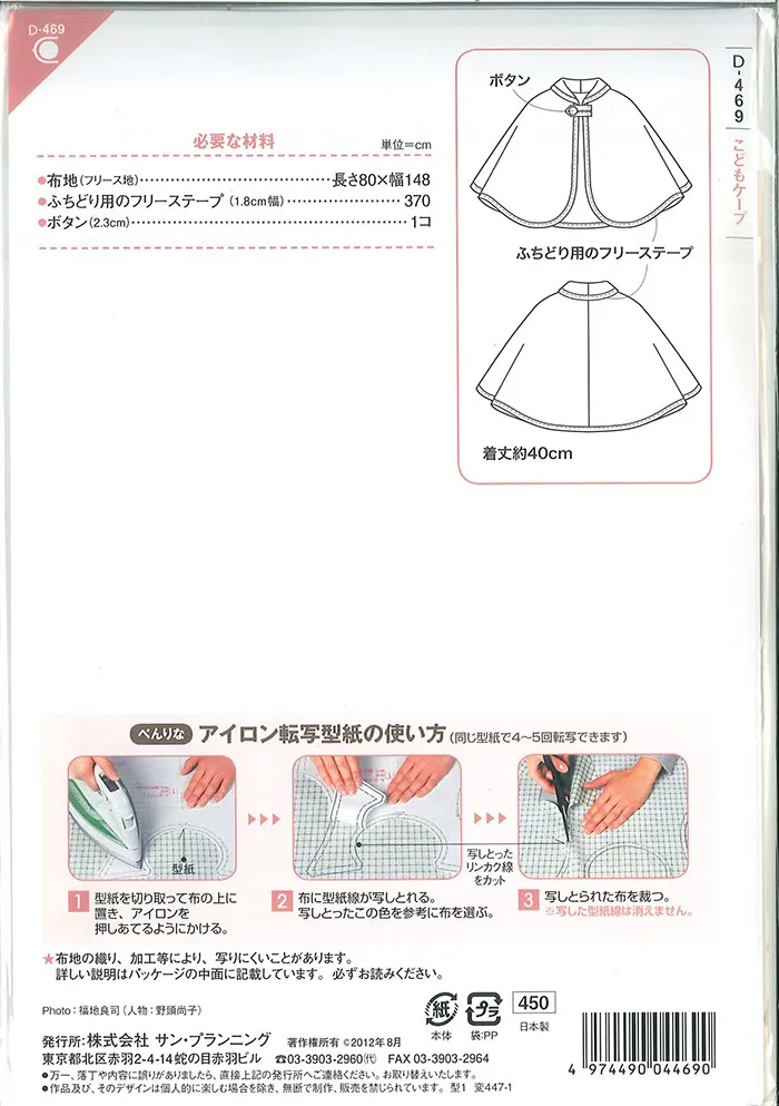 こどもケープ(アイロン転写型紙)
