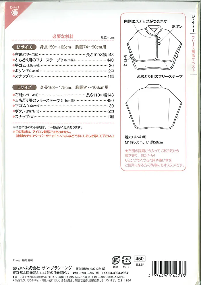 パターン・型紙 フリース肩あてベスト