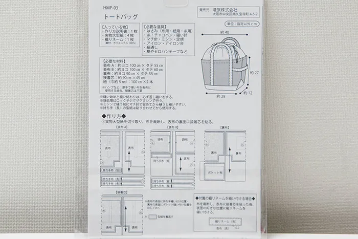 その他必要な道具:ハサミ(布用・紙用・糸用)/糸/チャコペン/縫い針/まち針/ミシン/定規/アイロン/アイロン台/紐通し/ノリやセロテープなど