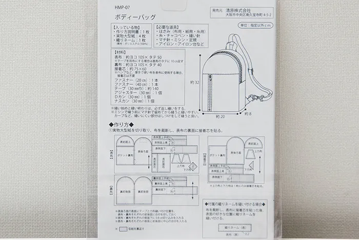 その他必要な道具:ハサミ(布用・紙用・糸用)/糸/チャコペン/縫い針/まち針/ミシン/定規/アイロン/アイロン台など