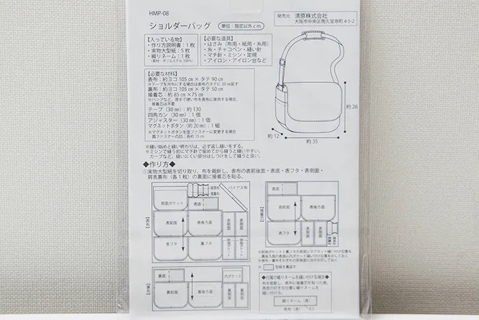その他必要な道具:ハサミ(布用・紙用・糸用)/糸/チャコペン/縫い針/まち針/ミシン/定規/アイロン/アイロン台など