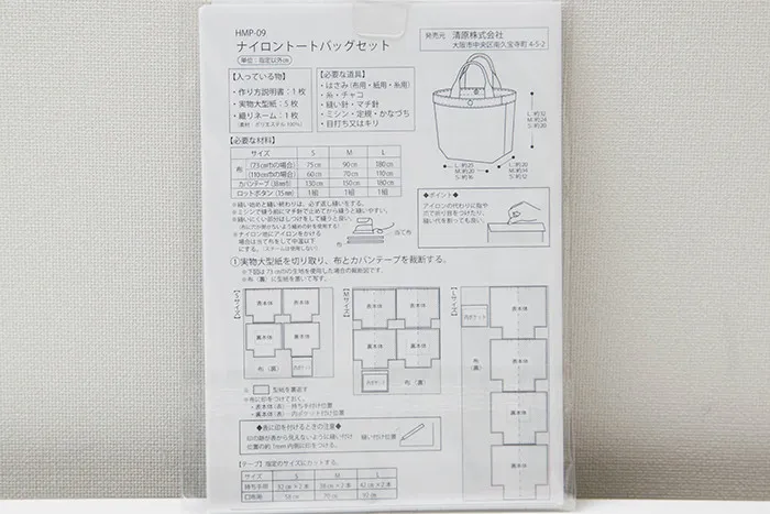ナイロントートバッグセット 型紙