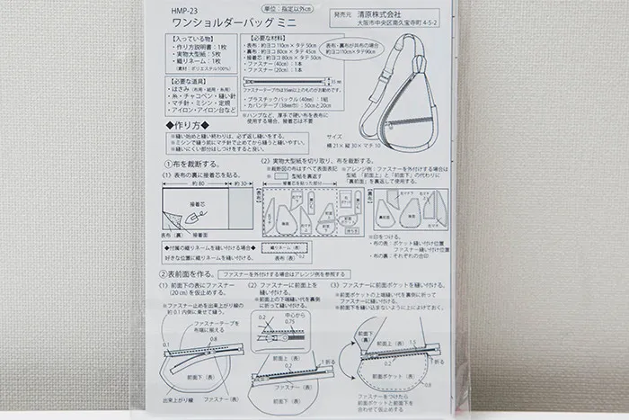 その他必要な道具:ハサミ(布用・紙用・糸用)/糸/チャコペン/縫い針/まち針/ミシン/定規/アイロン/アイロン台など