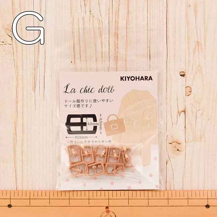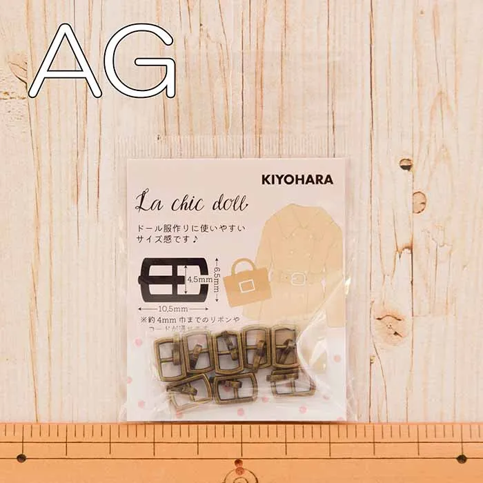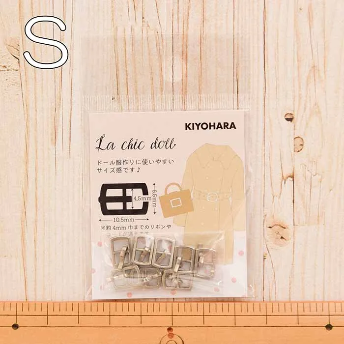 リボンやコードなどを通して使用するドール用ミニバックルです。リアルクローズのようなお洋服・バッグ作りを楽しめるおすすめのアイテムです。