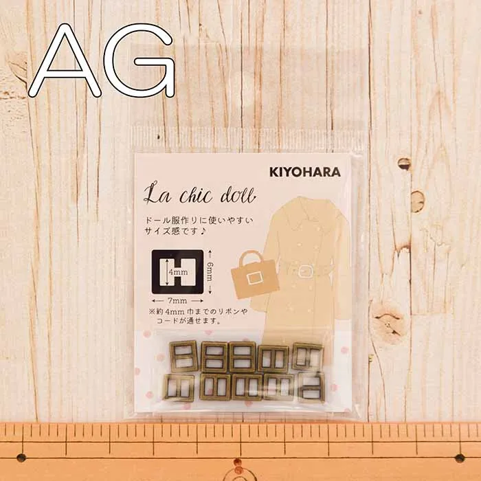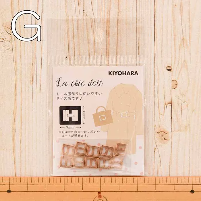 リボンやコードなどを通して使用するドール用ミニバックルです。リアルクローズのようなお洋服・バッグ作りを楽しめるおすすめのアイテムです。
