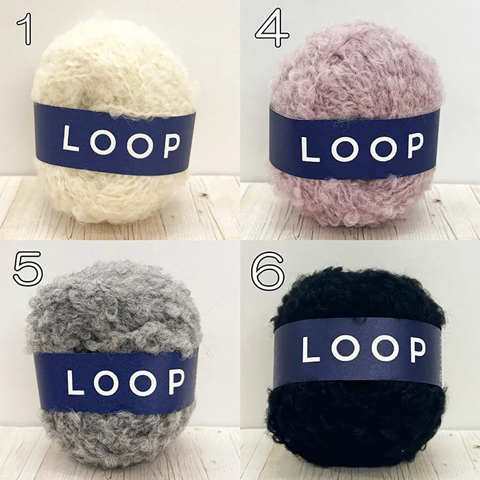 クルクルとした毛並みは、ボリューム感があり軽くてあたたか。ループの芯糸までウールにすることで、やわらかな編み心地と肌触りにしています。 ザクザクと編み進められ、かんたんな編み方でも表情豊かに仕上がるおすすめの毛糸です。