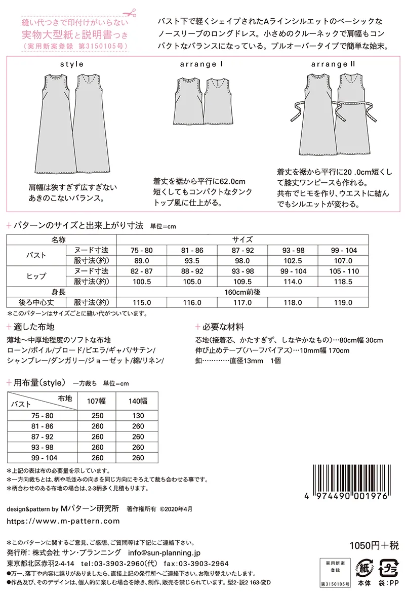 パターン 型紙 ノースリーブAラインロングドレス