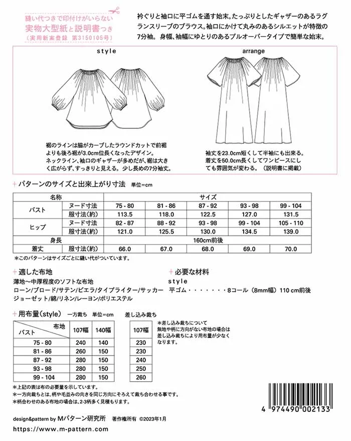 身幅、袖幅にゆとりのあるプルオーバータイプで簡単な始末。