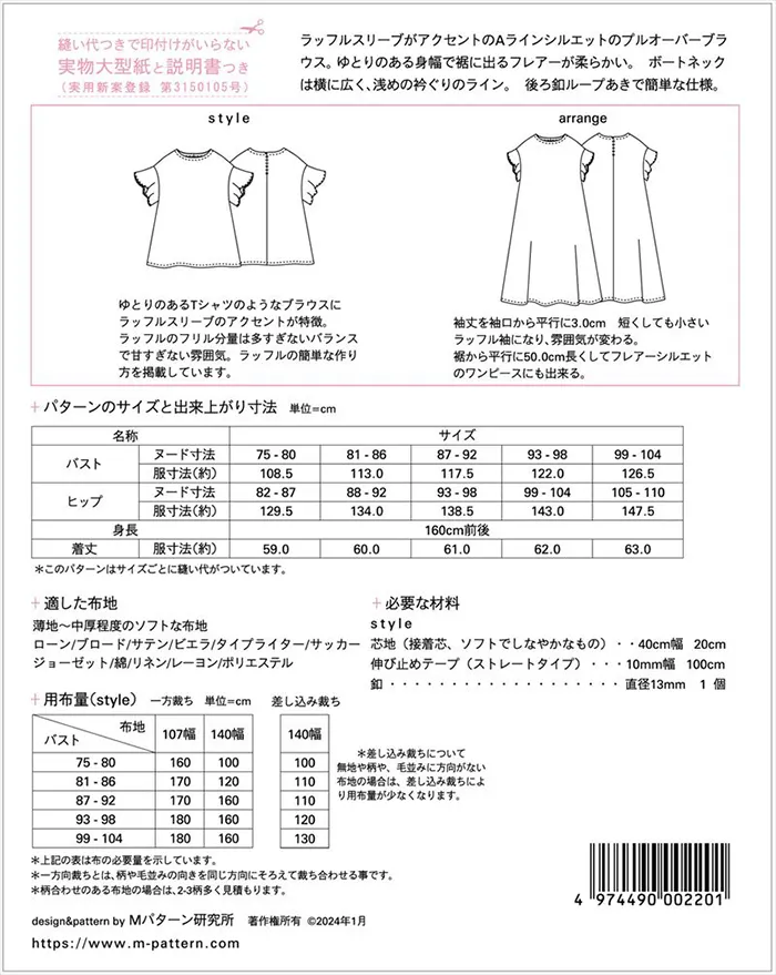ラッフルスリーブがアクセントのA ラインシルエットのプルオーバーブラウス。