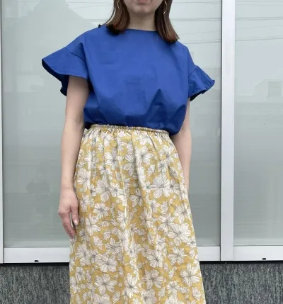ラッフルのフリル分量は多すぎないバランスで、甘くなりすぎない雰囲気で着やすい。