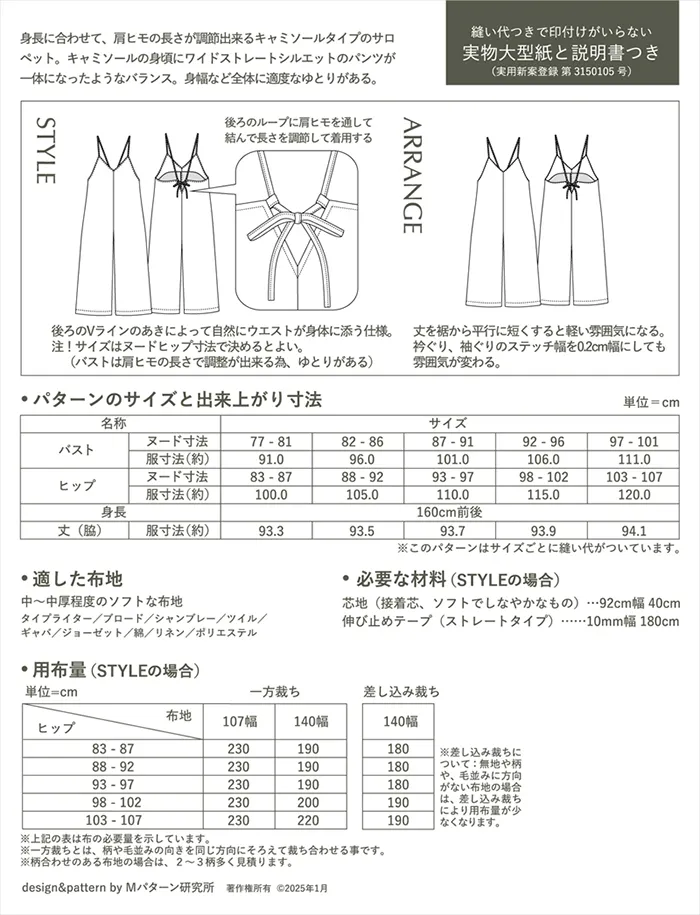 キャミソールの身頃にワイドストレートシルエットのパンツが一体になったようなバランスのサロペットパンツ。