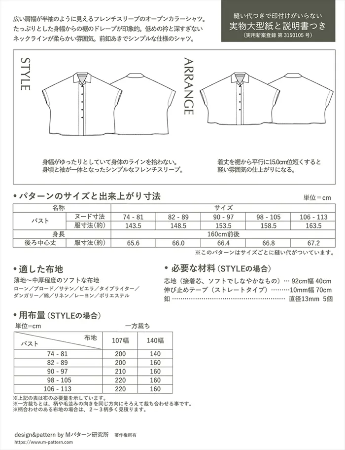 パターン・型紙 ワイドフレンチスリーブシャツ