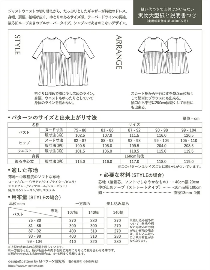 パターン・型紙 ジャストウエストギャザードレス