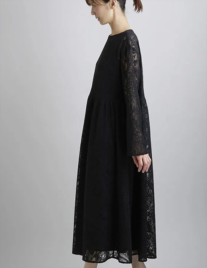 ジャストウエストの切り替えからたっぷりとしたギャザーが特徴のシンプルであきのこないロングワンピース。
