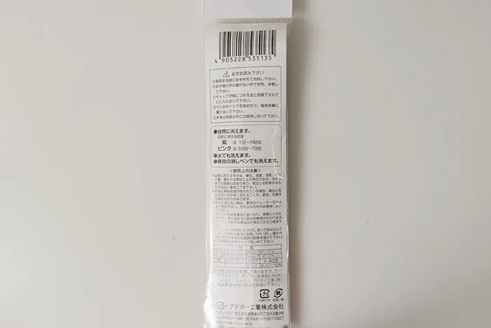 時間がたつと、自然に消え、水でも消える!水性チャコペンです。