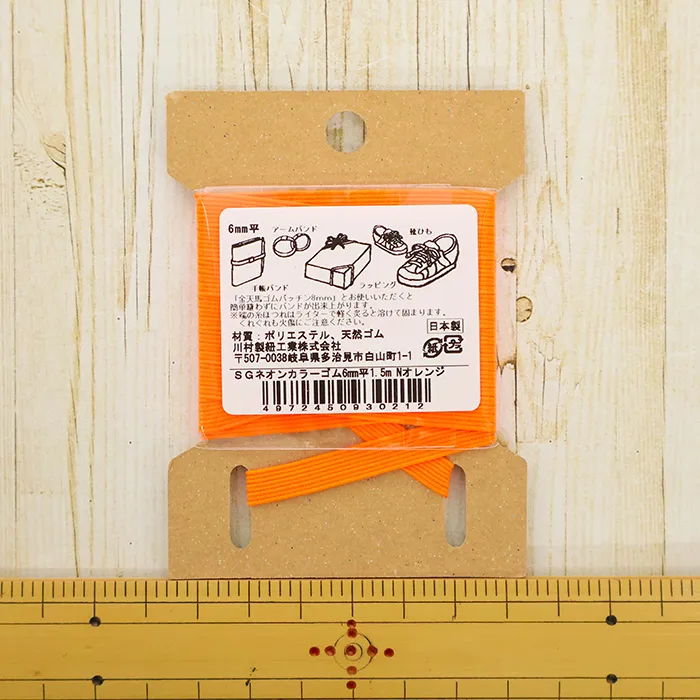 ネオンカラーが目を引く平ゴムです。