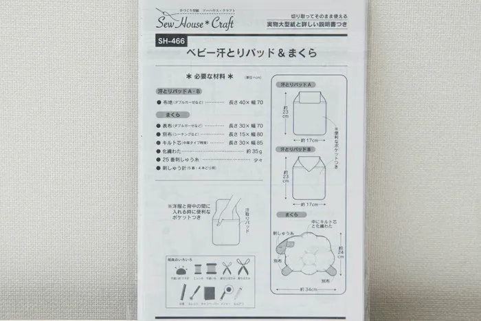 ベビー 汗とりパッド&まくら 型紙