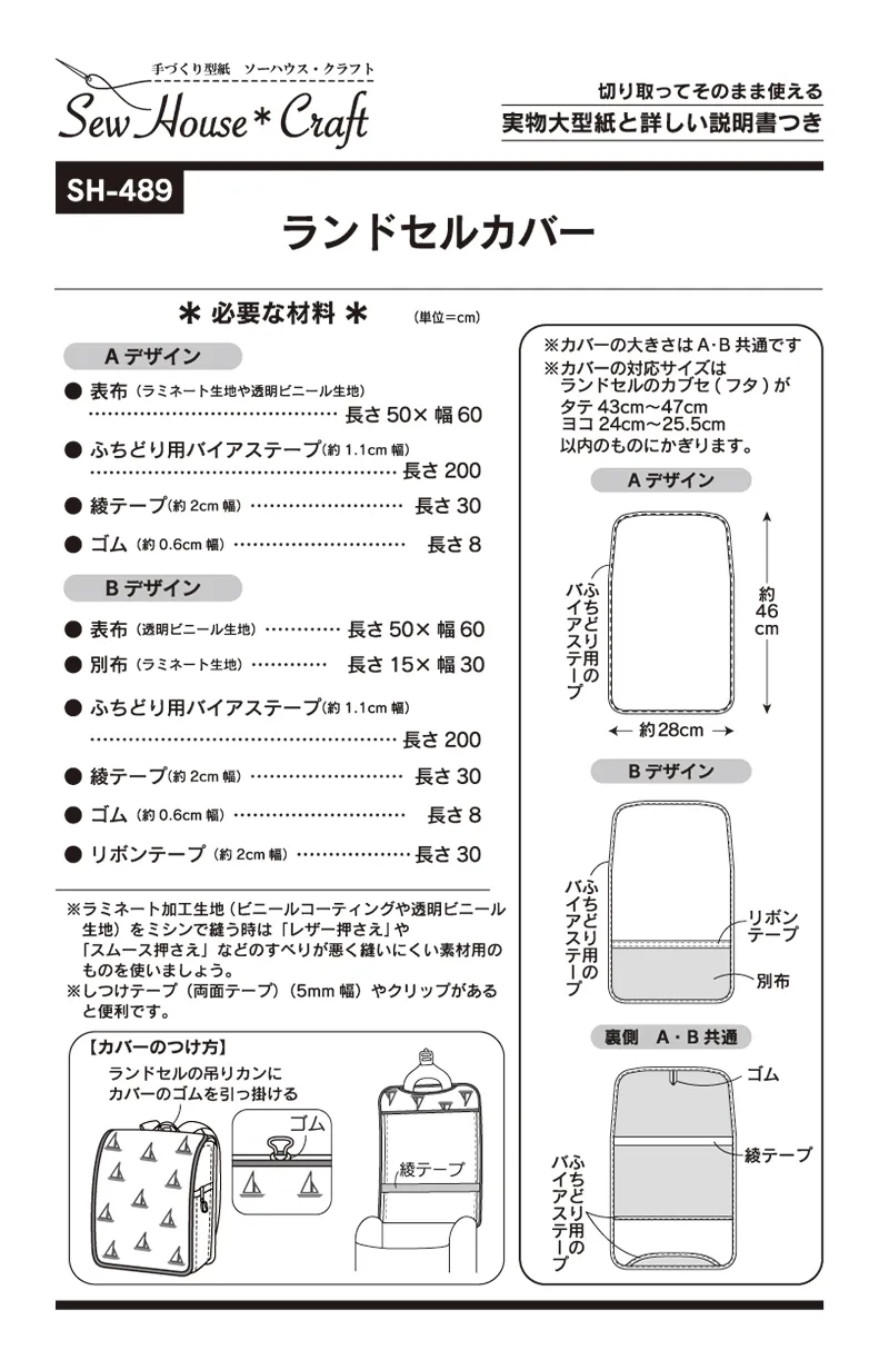 (A・Bカバーの対応サイズ:ランドセルのフタ(カブセ)の大きさが、タテ43~47cm、ヨコ24~25.5cm 以内のものにかぎります。)