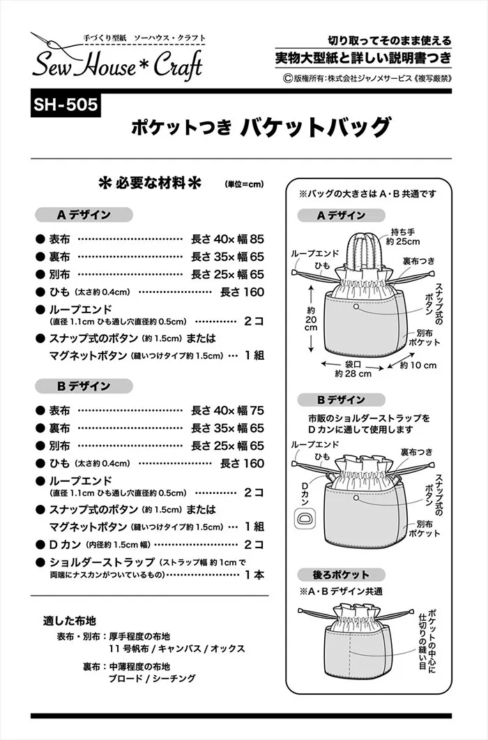 表布・別布:厚手タイプの布地(11号帆布/キャンバス/オックス)