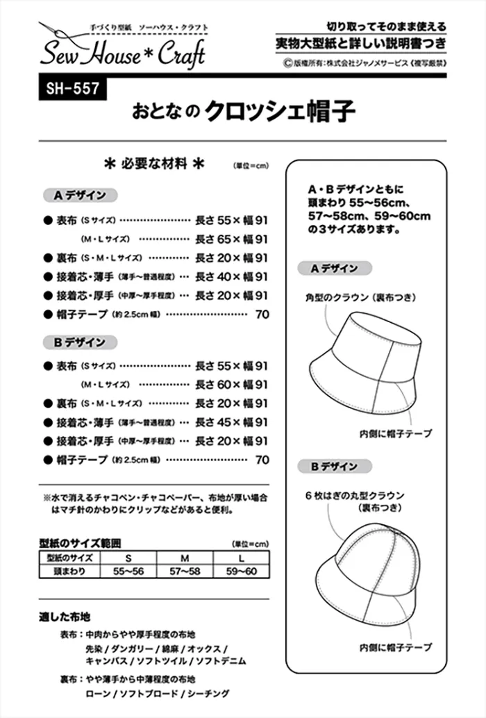 タイプ:大人(頭まわり:55~56cm、57~58cm、59~60cm の3サイズ)