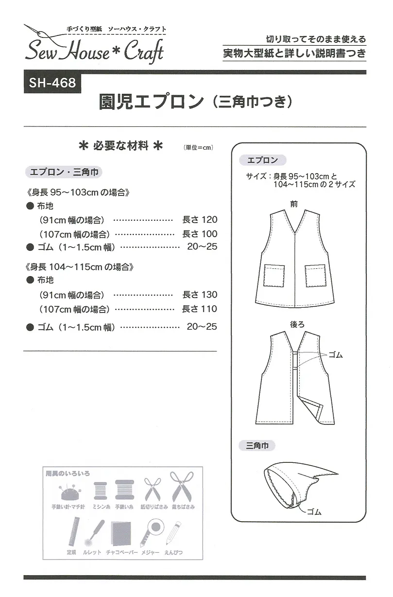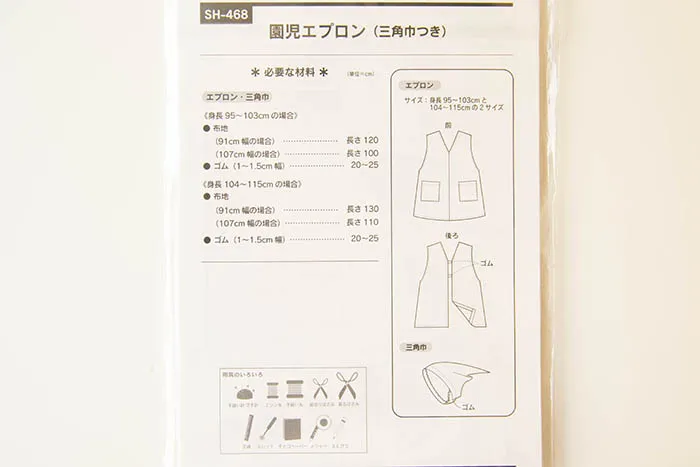 お子さまが一人で着られる後ろゴム仕様のエプロンと三角巾のセットです。